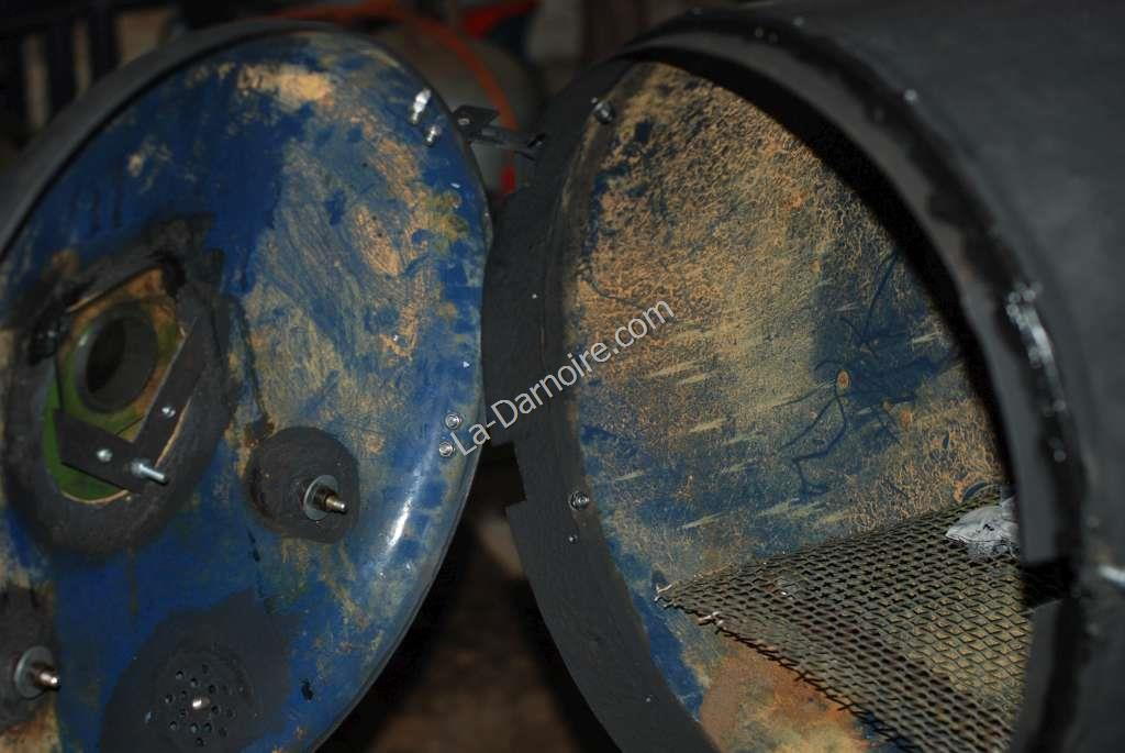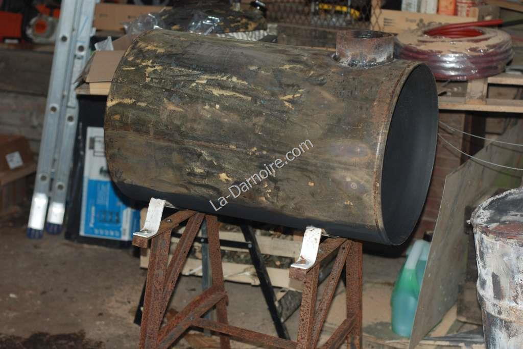 Now LSS had given me a propane space heater for my birthday several years ago; this was used quite a lot in the UK when I was rebuilding my Land Rover. Unfortunately when I connected it up here, I found that the thermocouple had expired. In other words, it would only function if you kept the ignition button depressed. Spares proved to be unavailable, so instead of spending money on another model, I decided to build myself a woodburning stove. Having found an old electric hot water cylinder in one of the barns at the aged FIL's place, I decided to convert this into a wood burner. The advantage of using an electric hot water cylinder is that the walls are fairly thick, which is useful if you're going to burn wood in it!